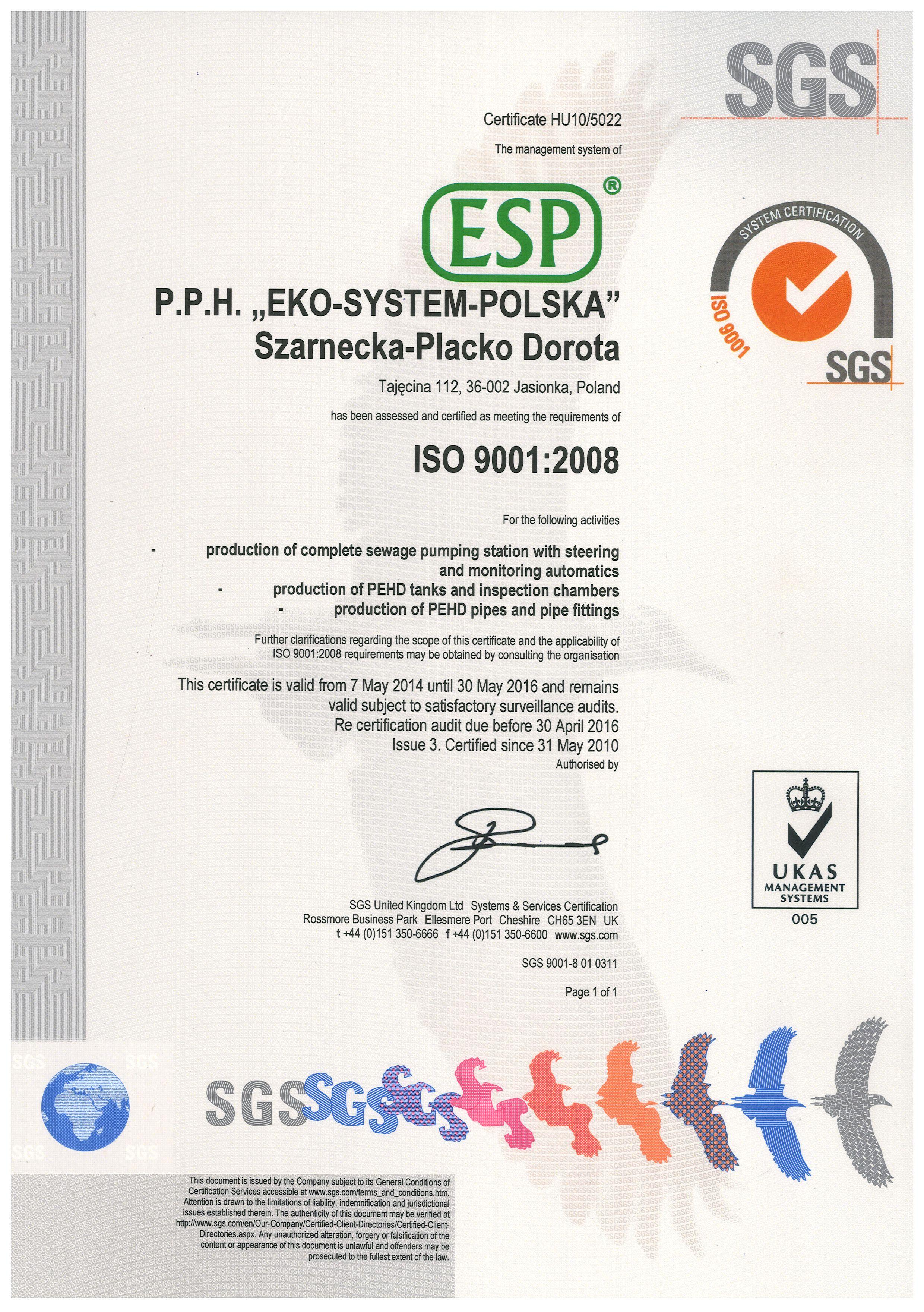 Certyfikaty - Eko-System-Polska | Eko-System-Polska