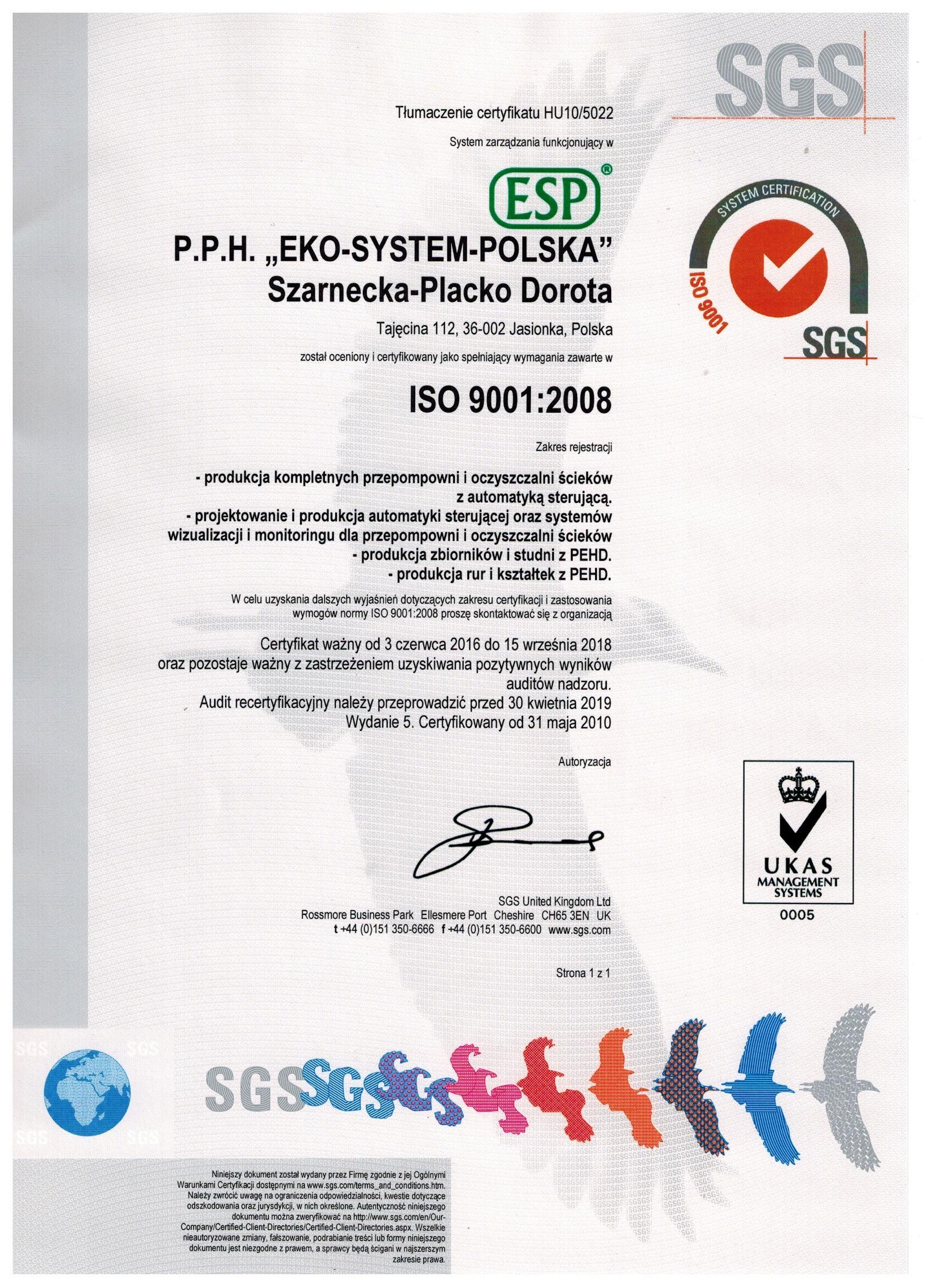 Certyfikaty - Eko-System-Polska | Eko-System-Polska
